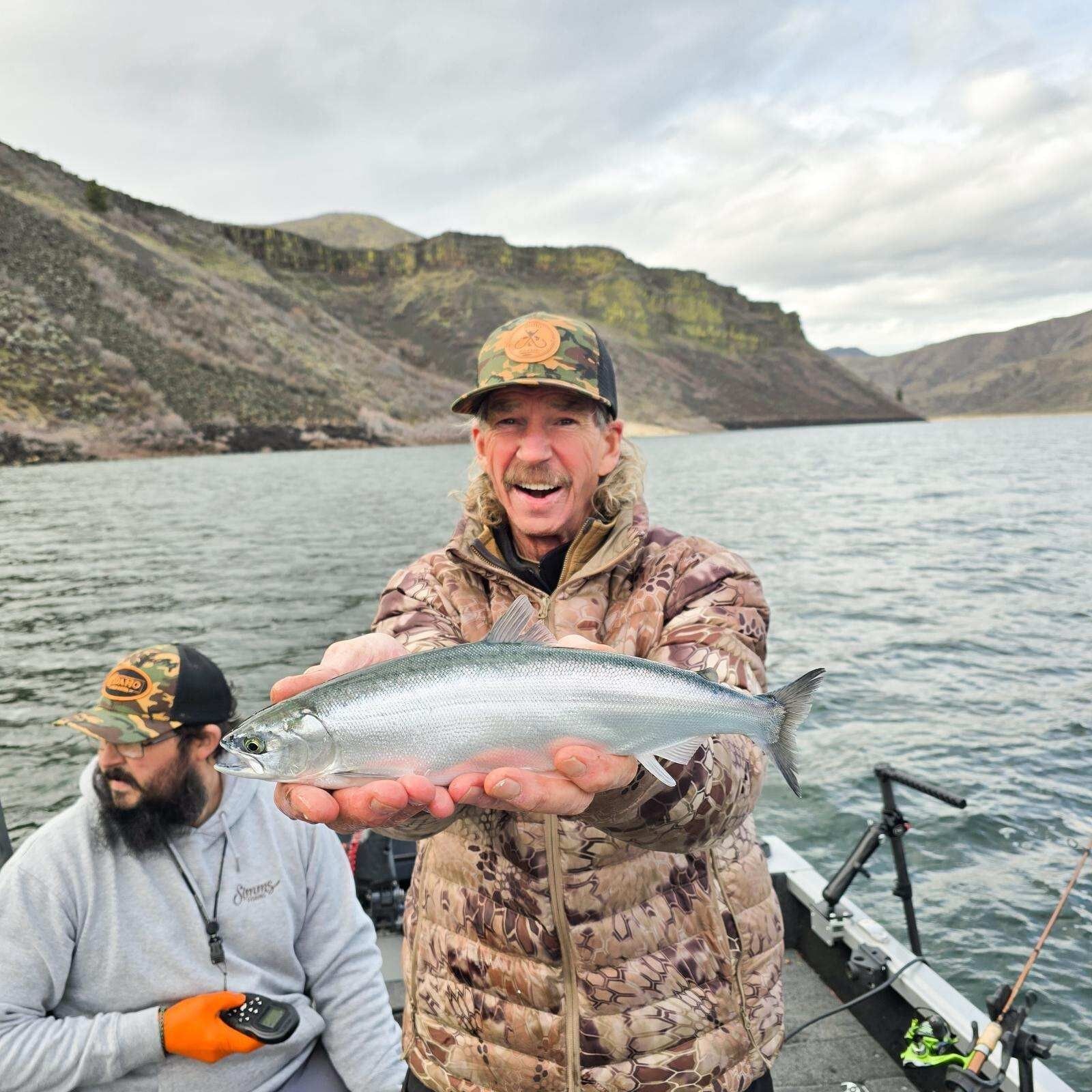 Toms first Kokanee!! Just visiting his son Josh for a little bit!!